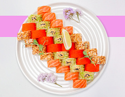 Лосось, сливочный сыр, авокадо, стружка тунца.