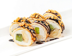 Блинчик, сливочный сыр, банан, киви, арахис, шоколадный топпинг