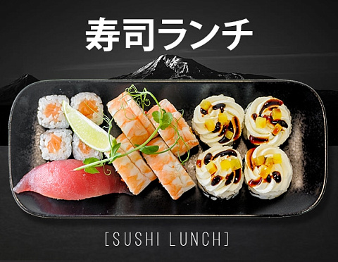 Ролл с морским окунем темпура, японским омлетом, грибами, соусом Спайси, сливочным сыром, такуаном и соус Терияки,