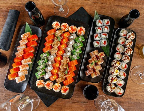 Ролл: Копчёный лосось, авокадо, сливочный сыр.