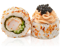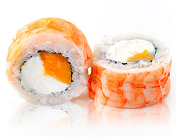 Креветка темура, огурец, сливочный сыр, сыр чеддер, соус гриль