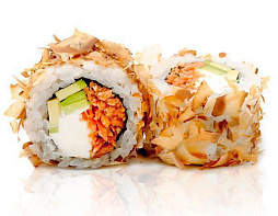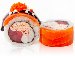 Лосось, креветка, тунец, крабовые палочки, майонез, икра масаго, соус унаги, рисовые шарики, соус кр...