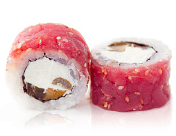 Тунец, сливочный сыр, водоросли маринованные, соус Ореховый, кунжут белый