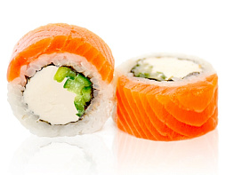 Морской окунь, сливочный сыр, огурец, соус Чили.