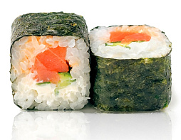 Копчёный лосось, сливочный сыр, огурец, соус Спайси