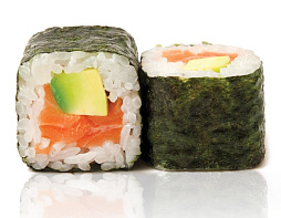 Копченый лосось, морской окунь, огурец, перец сладкий, салат, сливочный сыр, майонез, икра летучей р...