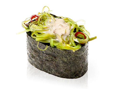 Маринованные водоросли, ореховый соус.