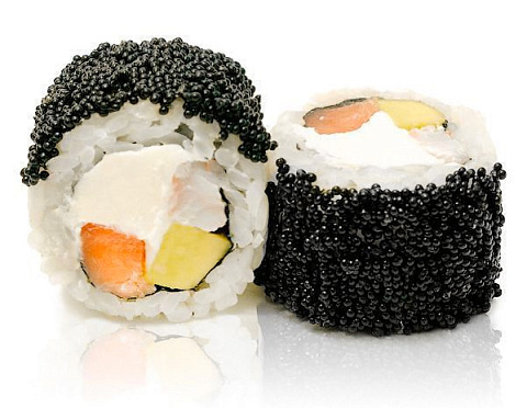 Лосось, креветка, сливочный сыр, авокадо, икра масаго.
