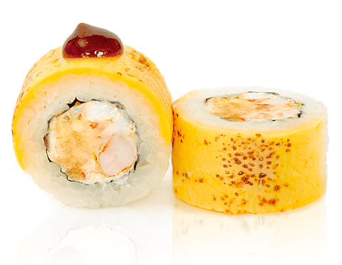 Копченый лосось, креветка в темпуре, манго, сливочный сыр, соус Спайси