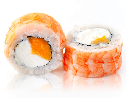 Лосось, креветка, сливочный сыр, авокадо, икра масаго