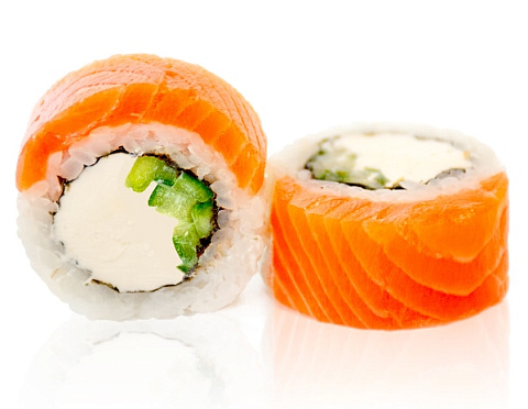 Лосось жареный в соусе Терияки, сливочный сыр, огурец, соус Спайси