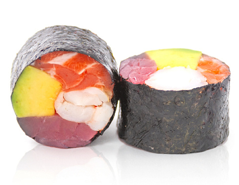 Креветка темура, огурец, сливочный сыр, сыр чеддер, соус гриль