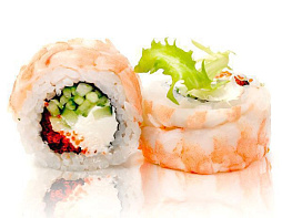 Копченый лосось, креветка в темпуре, манго, сливочный сыр, соус Спайси