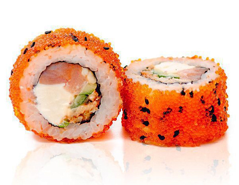 Копченый лосось, темпура, лосось жареный в соусе Терияки, майонез.